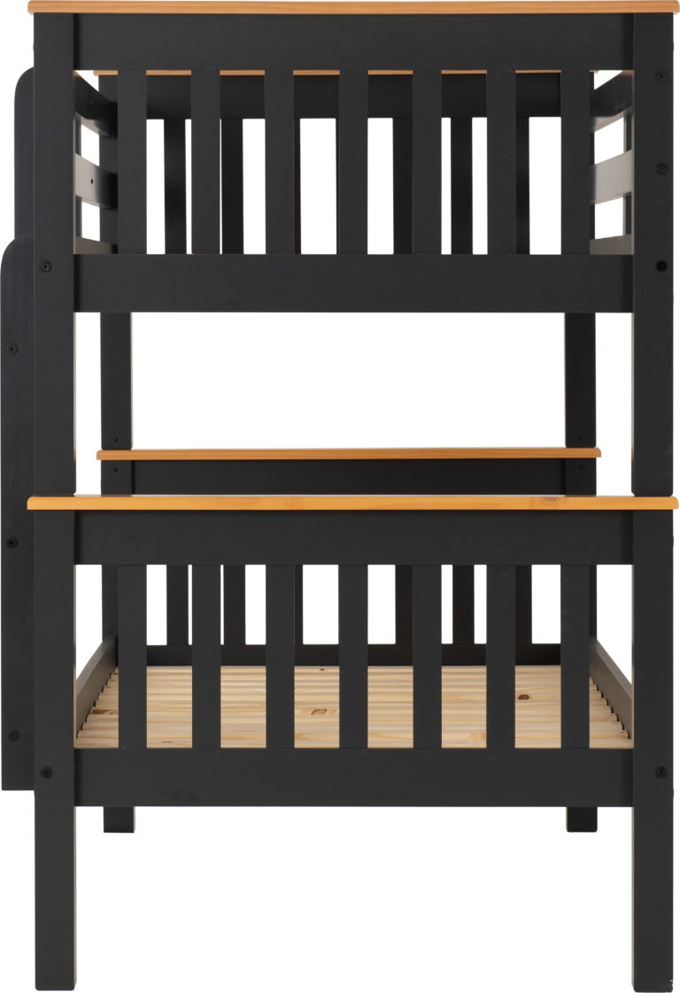 Extra Information: Height Below Side rail H280mm, Height Of Bed Base H325mm, Height Below Bed Base H310mm, Head/foot-board Height H760mm, Height Between Bed Bases H760mm, Ladder On Right Side. Post Thickness 60mm, 28 Wooden Slats 70mm X 18mm Max Mattress Thickness 180mm. ASSEMBLY NEEDED
